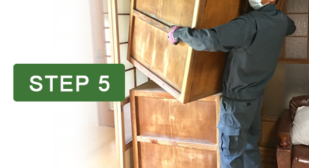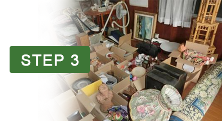 作業開始前に、保持するべき品物と処分する品物を整理し、お客様の要望に基づいて必要な品物を探します。